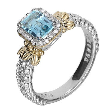 14K Gold and Sterling Silver, Sky Blue Topaz and Diamond Ring