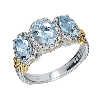 14K Gold and Sterling Silver, Sky Blue Topaz and Diamond Ring