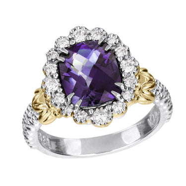 14K Gold and Sterling Silver, Amethyst and Diamond Ring