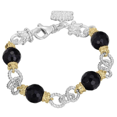 14K Gold and Sterling Silver, Two-Tone Black Onyx Rope Chain Bracelet