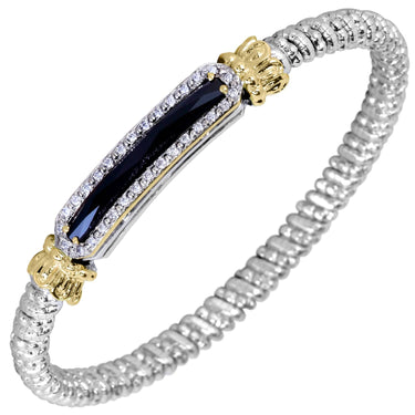 14K Gold and Sterling Silver, Black Onyx Bar and Diamond Stackable Bracelet | 4MM