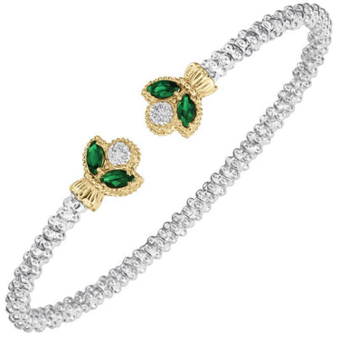14K Gold and Sterling Silver, Diamond and Tsavorite Garnet Stackable Bracelet | 2MM