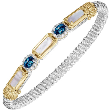 14K Gold and Sterling Silver, Mother of Pearl, Blue Topaz and Diamond Stackable Bracelet | 3MM