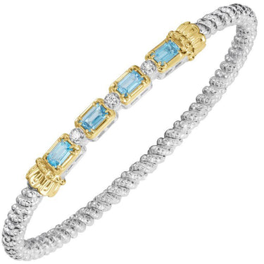 14K Gold and Sterling Silver, Blue Topaz and Diamond Stackable Bracelet | 3MM