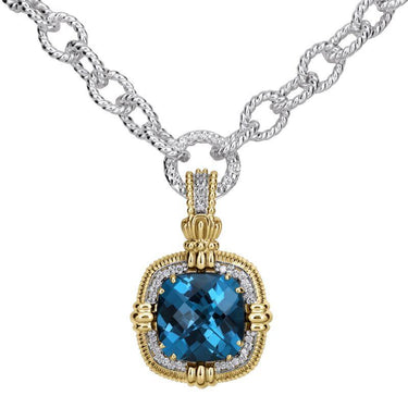 14K Gold and Sterling Silver, Diamond and London Blue Topaz Necklace From $3,025.00 / -