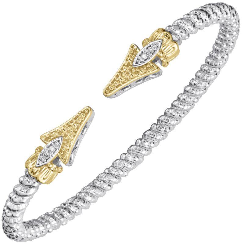 14K Gold and Sterling Silver, Diamond Stackable Cuff Bracelet | 3MM
