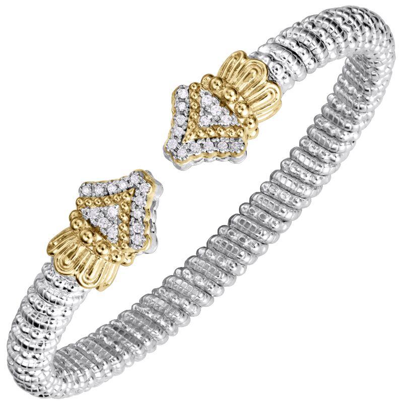 14K Gold and Sterling Silver, Diamond Stackable Cuff Bracelet | 6MM