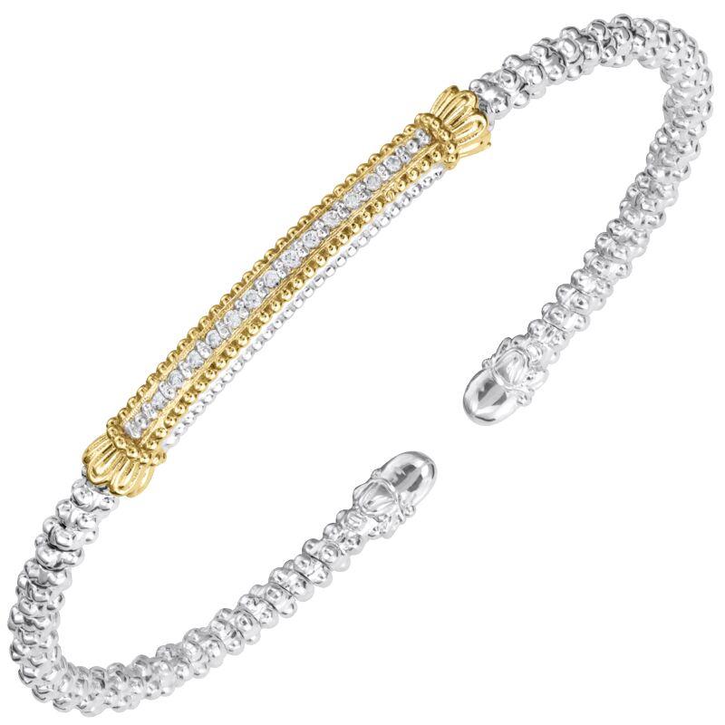 14K Gold and Sterling Silver, Diamond Stackable Bracelet | 2MM