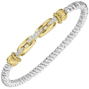 14K Gold and Sterling Silver, Diamond Stackable Bracelet | 3MM