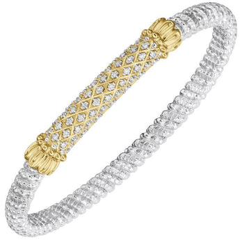 14K Gold and Sterling Silver, Diamond Stackable Bracelet | 4MM