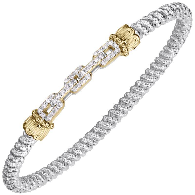 14K Gold and Sterling Silver, Diamond Stackable Bracelet | 4MM