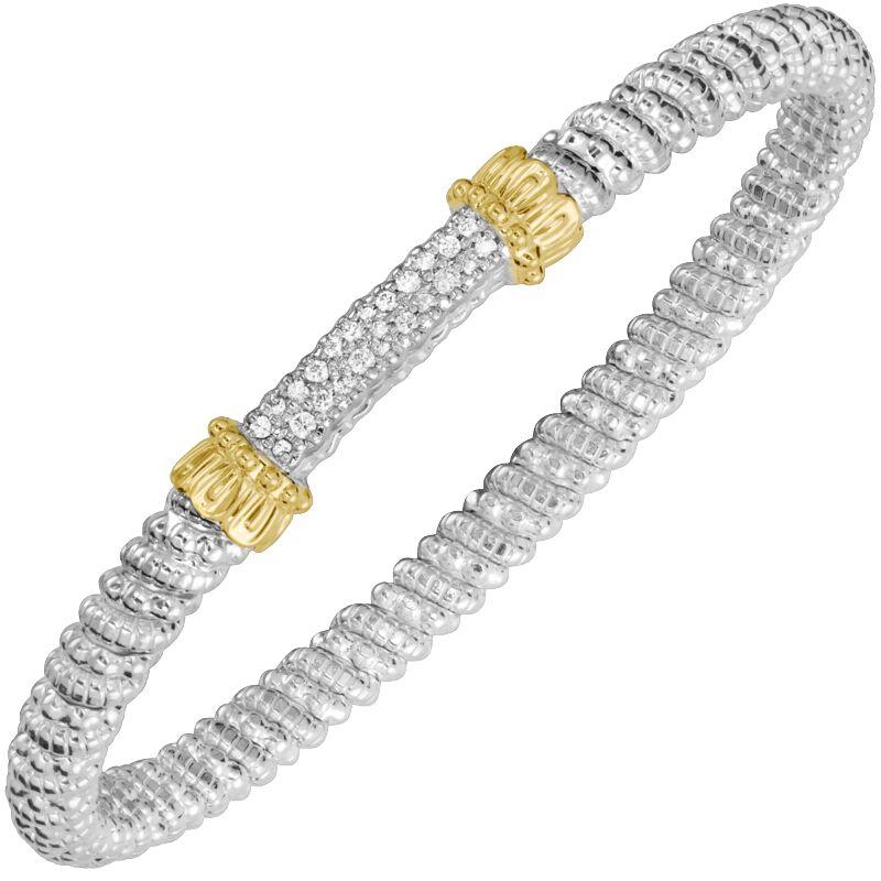 14K Gold and Sterling Silver, Diamond Stackable Bracelet | 4MM