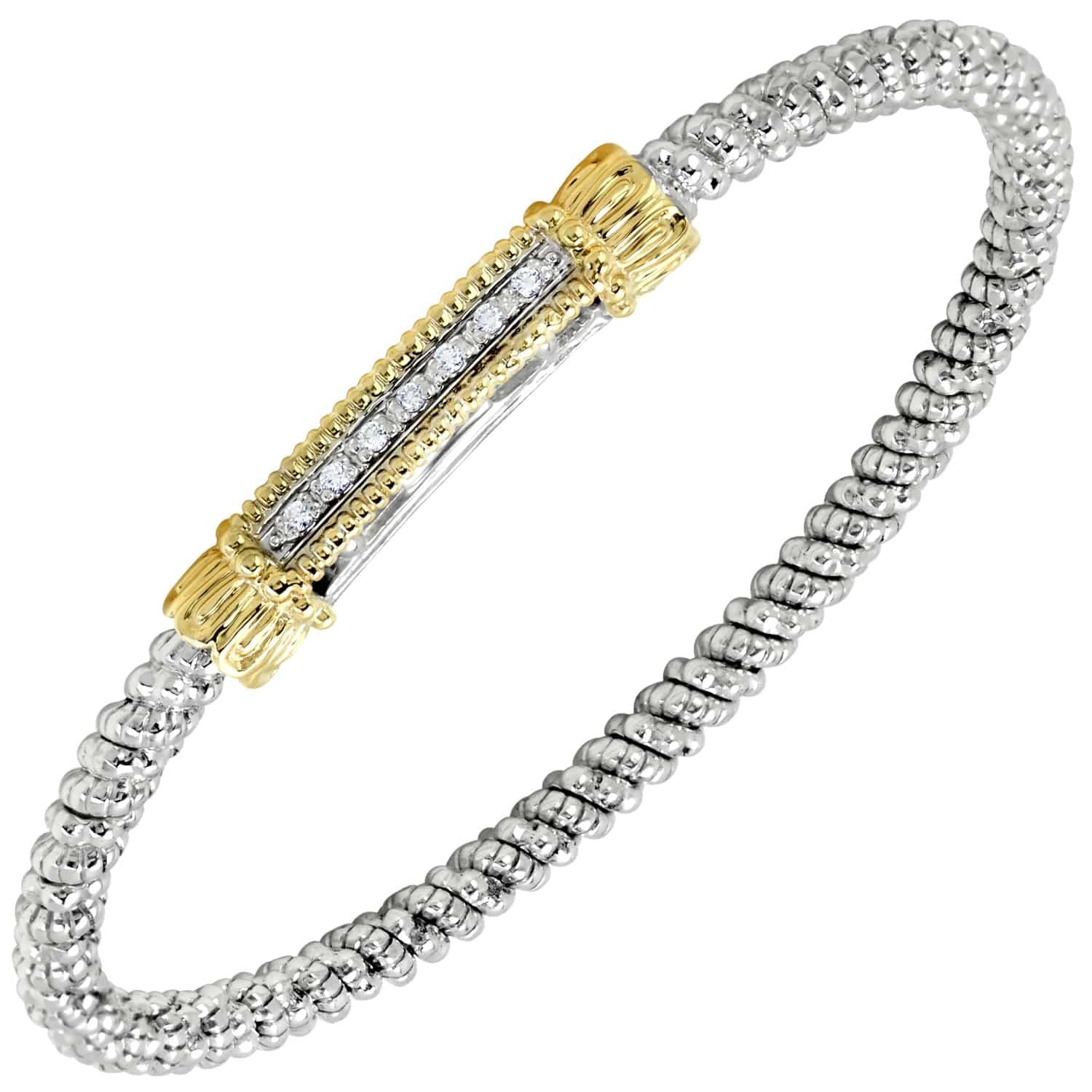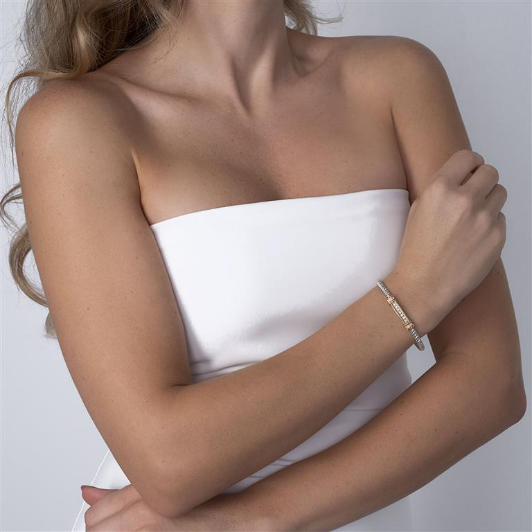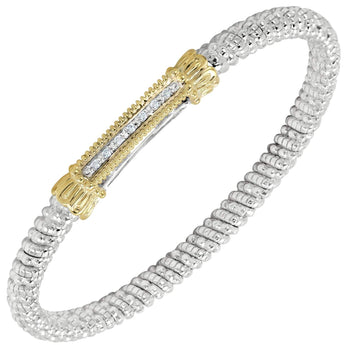 14K Gold and Sterling Silver, Diamond Stackable Bracelet | 4MM