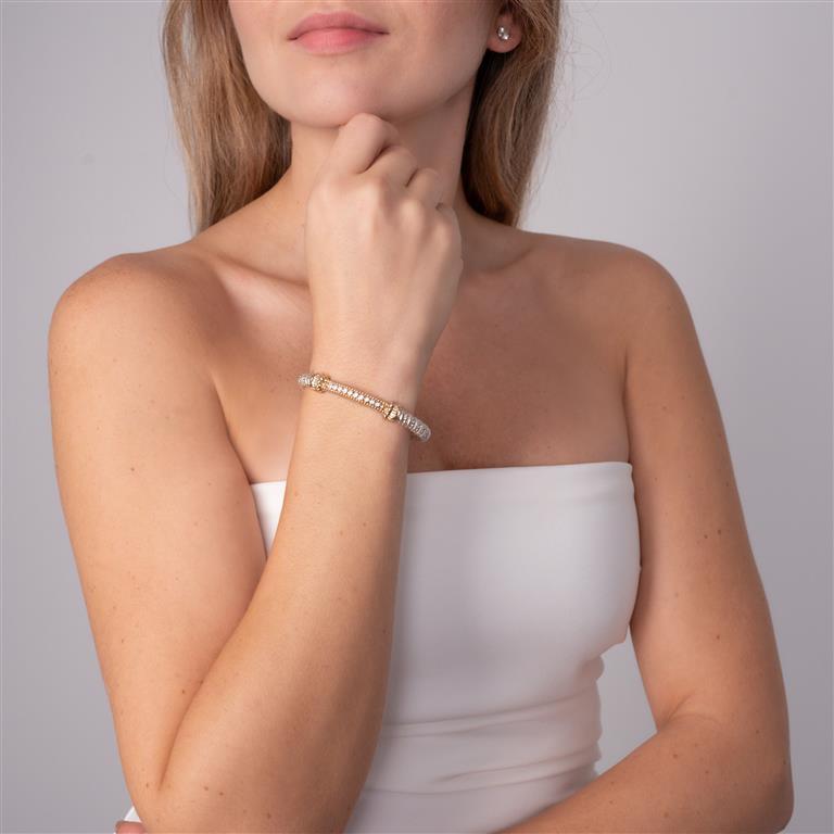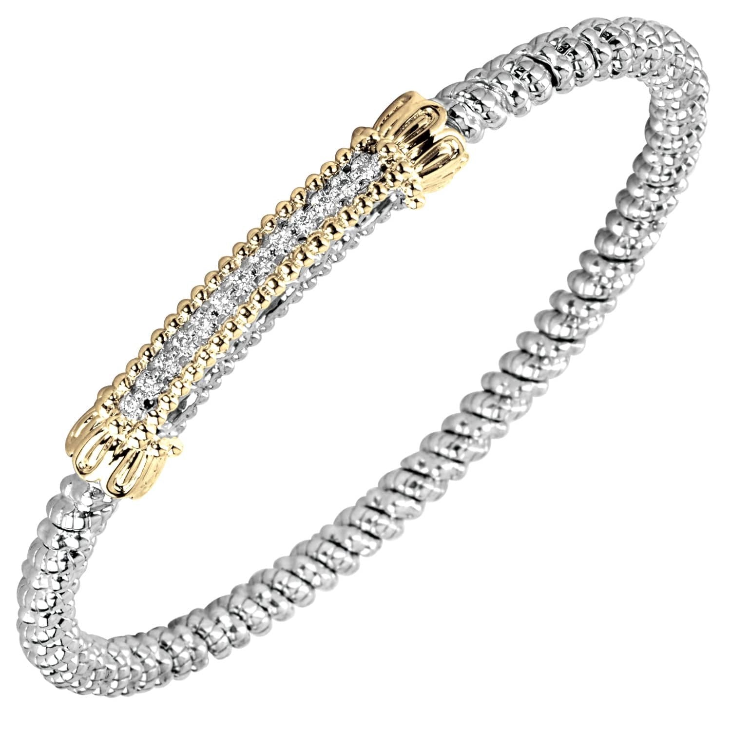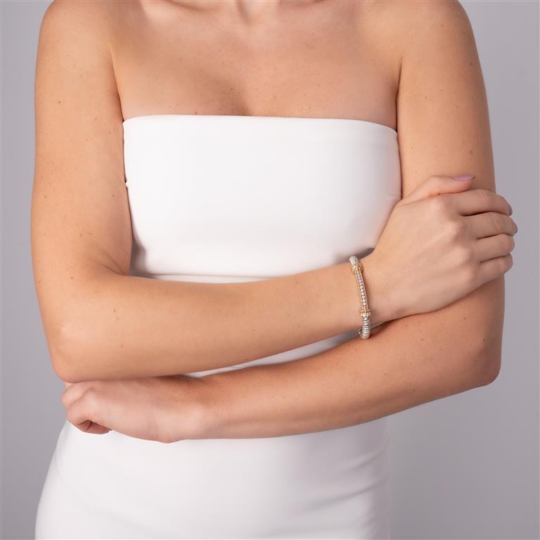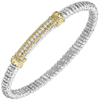 14K Gold and Sterling Silver, Diamond Stackable Bracelet | 4MM