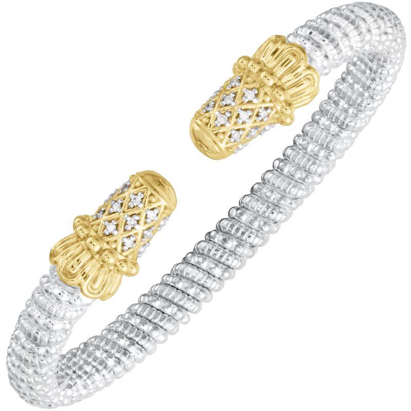 14K Gold and Sterling Silver, Diamond Stackable Bracelet | 6MM