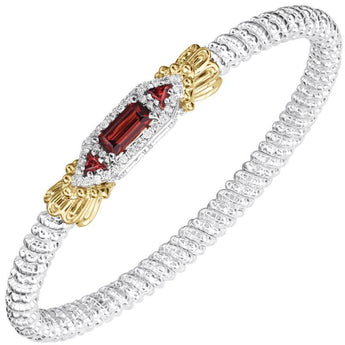 14K Gold and Sterling Silver, Garnet and Diamond Stackable Bracelet | 4MM