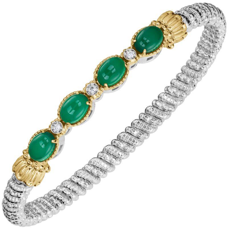 14K Gold and Sterling Silver, Green Onyx and Diamond Stackable Bracelet | 4MM