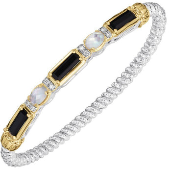 14K Gold and Sterling Silver, Mother of Pearl, Black Onyx and Diamond Stackable Bracelet | 3MM