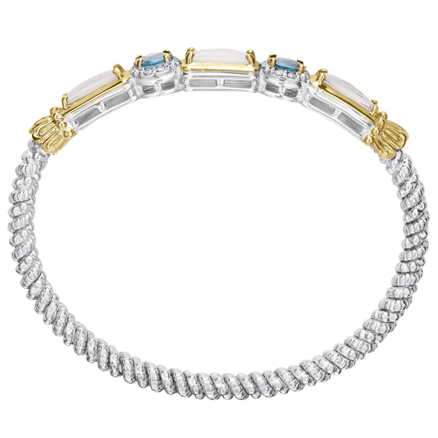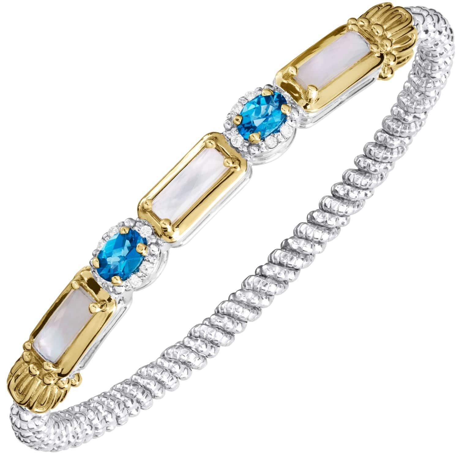 14K Gold and Sterling Silver, Mother of Pearl, Blue Topaz and Diamond Stackable Bracelet | 3MM