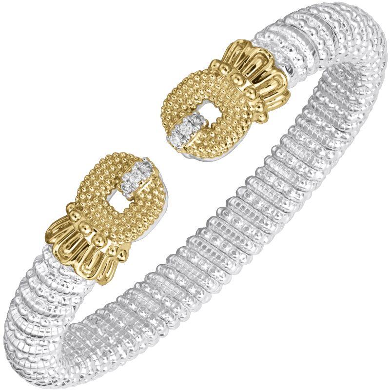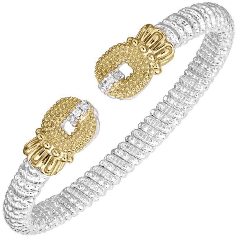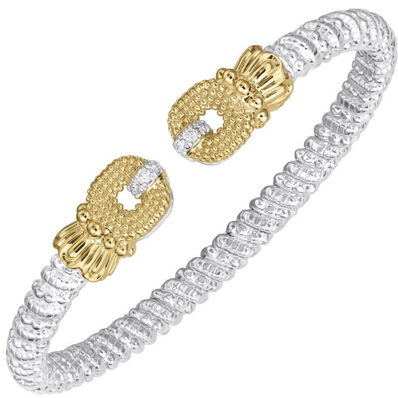 14K Gold and Sterling Silver, Diamond Stackable Bracelet | 4MM