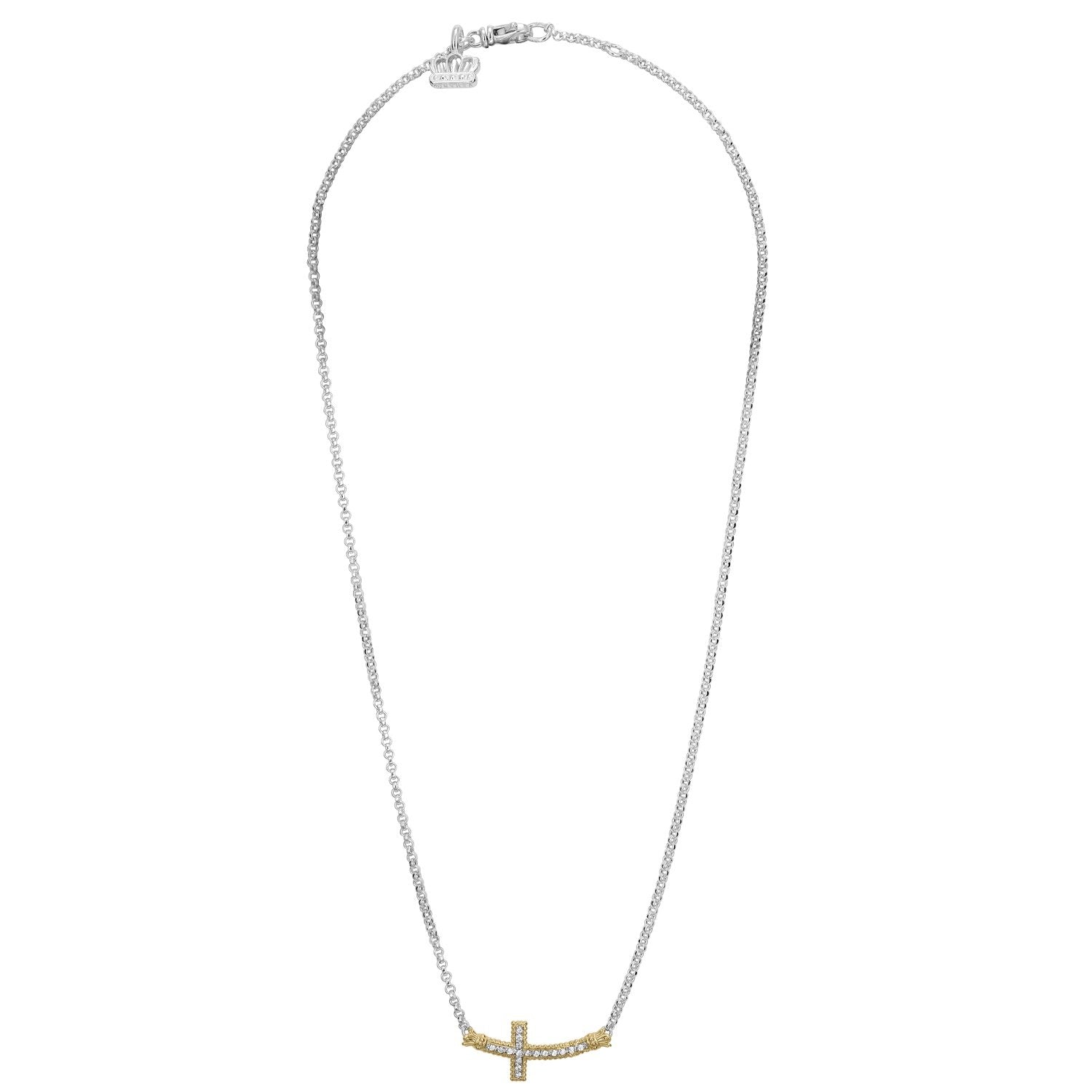 14K Gold and Sterling Silver, Diamond Cross Necklace