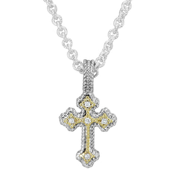 14K Gold and Sterling Silver, Diamond Cross Pendant