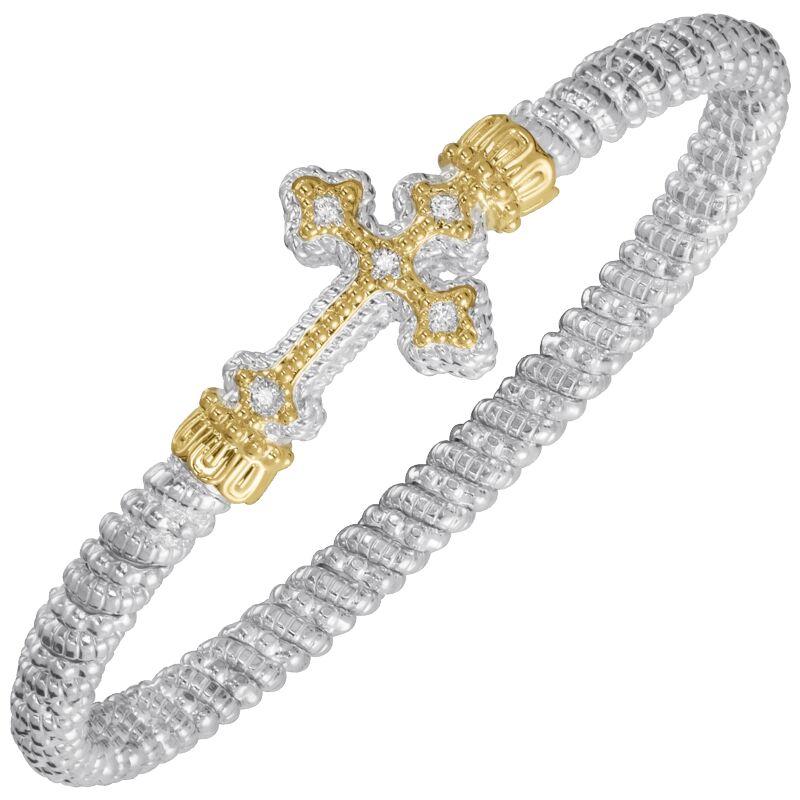 14K Gold and Sterling Silver, Diamond Cross Stackable Bracelet | 4MM