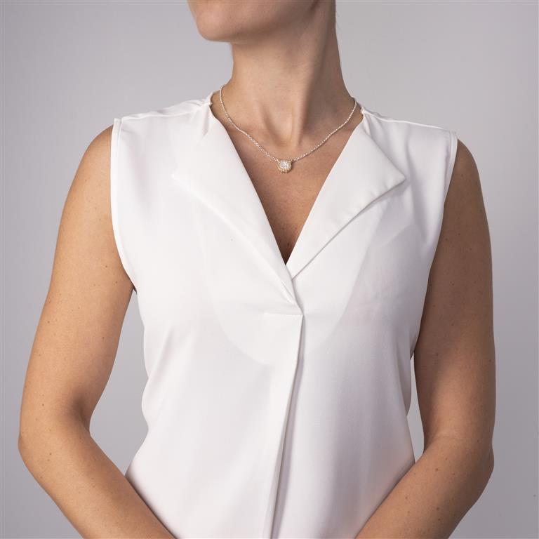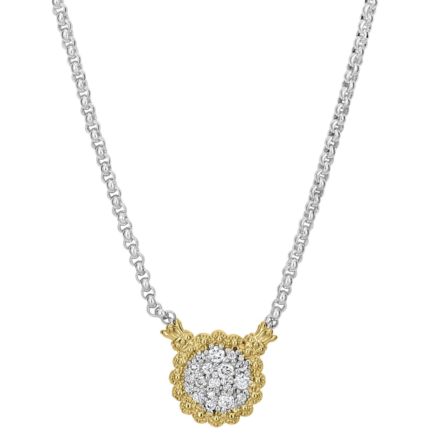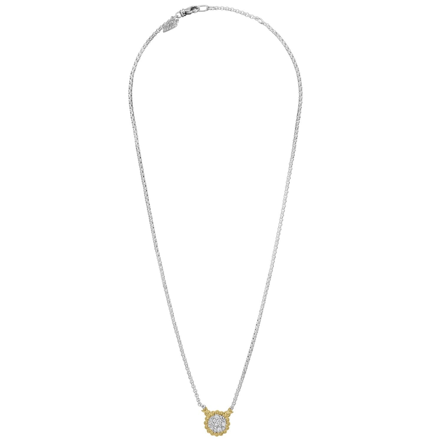 14K Gold and Sterling Silver, Diamond Disc Necklace