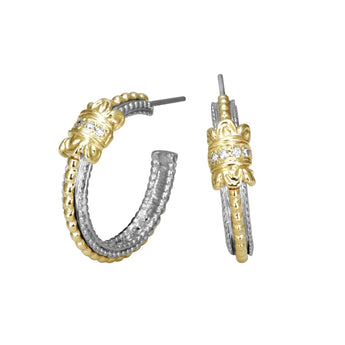 14K Gold and Sterling Silver, Diamond Hoop Earrings