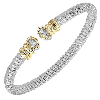 14K Gold and Sterling Silver, Diamond Stackable Cuff Bracelet | 4MM