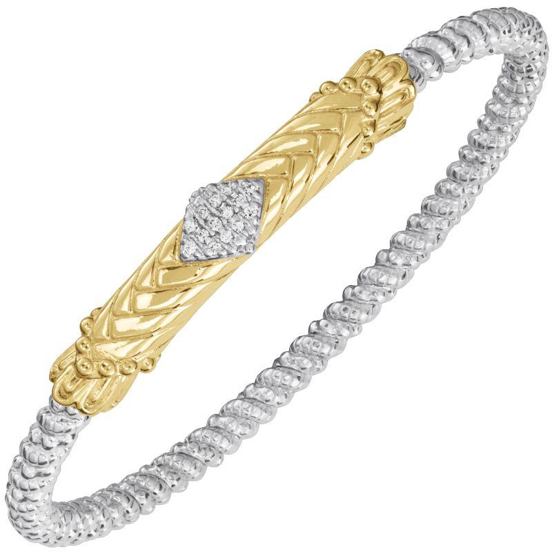14K Gold and Sterling Silver, Diamond Stackable Bracelet