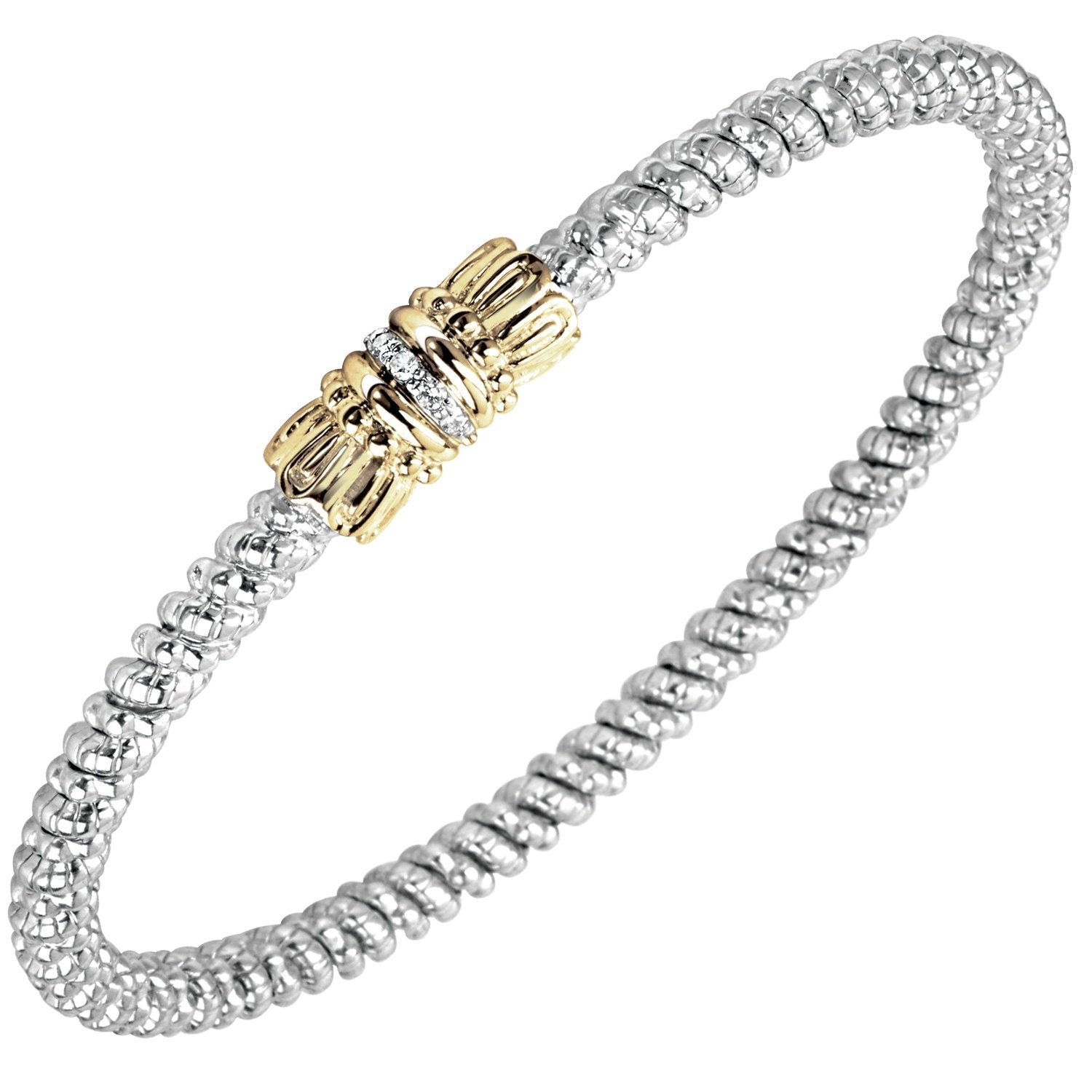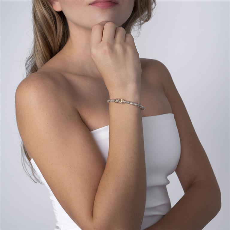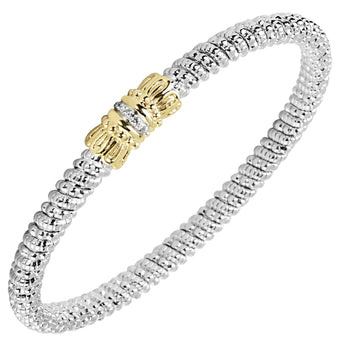 14K Gold and Sterling Silver, Diamond Stackable Bracelet | 4MM