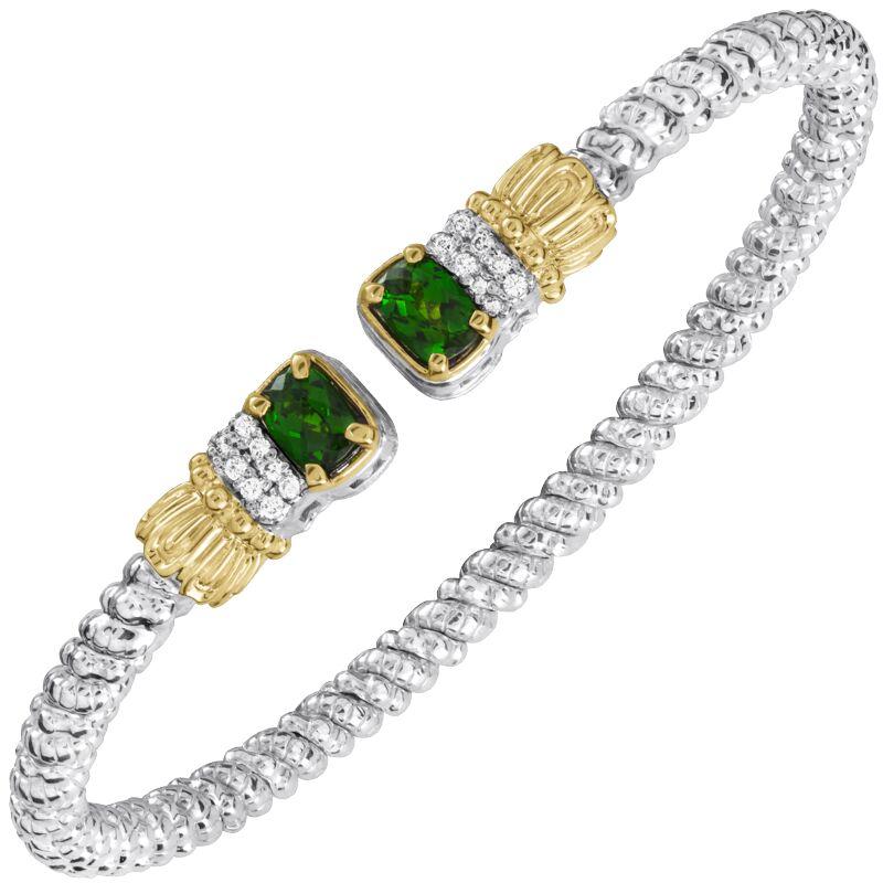 14K Gold and Sterling Silver, Chrome Diopside and Diamond Stackable Cuff Bracelet