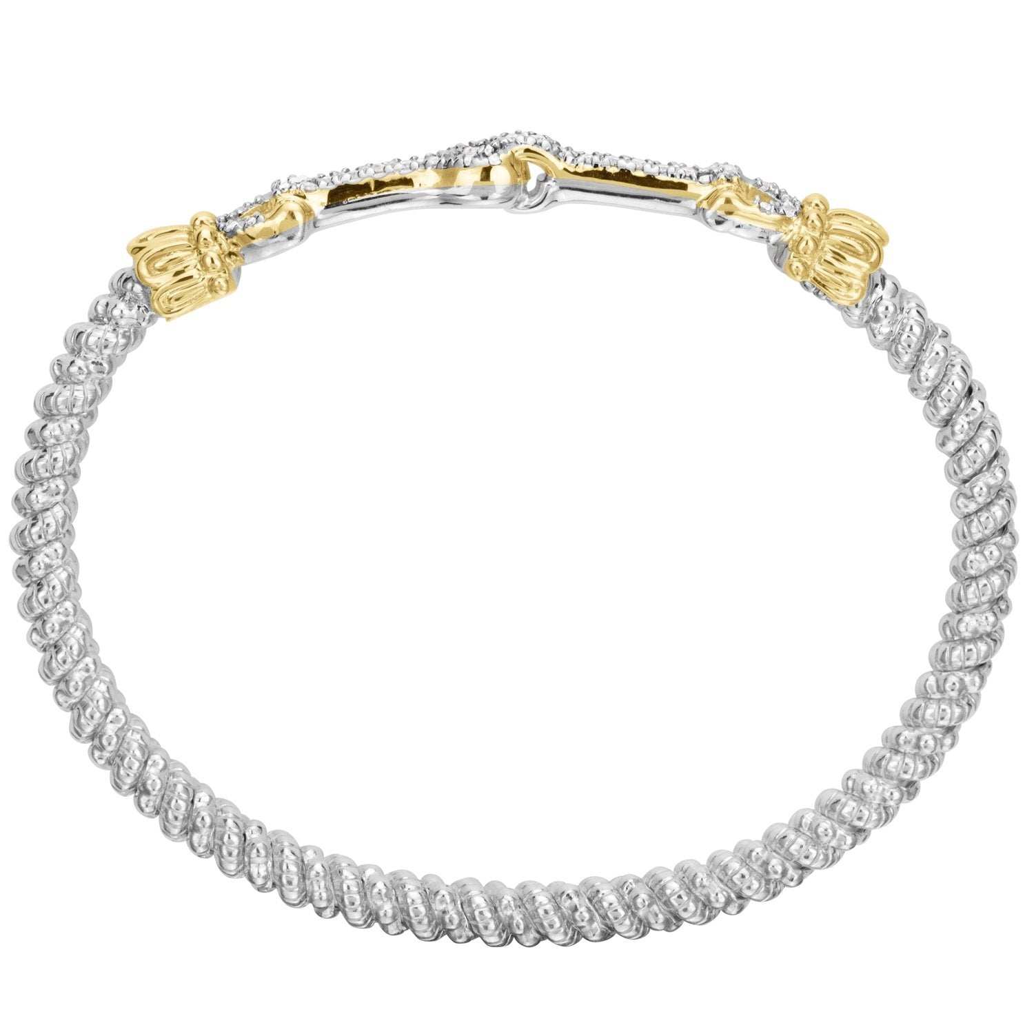 14K Gold and Sterling Silver, Diamond Horsebit Stackable Bracelet | 4MM