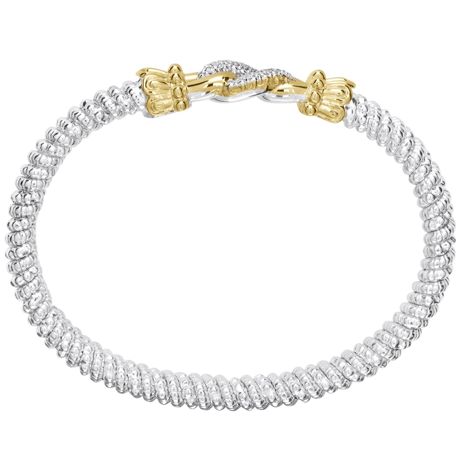 14K Gold and Sterling Silver, Diamond Stackable Bracelet | 6MM
