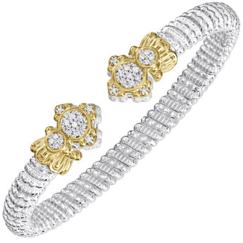 14K Gold and Sterling Silver, Diamond Stackable Bracelet | 6MM