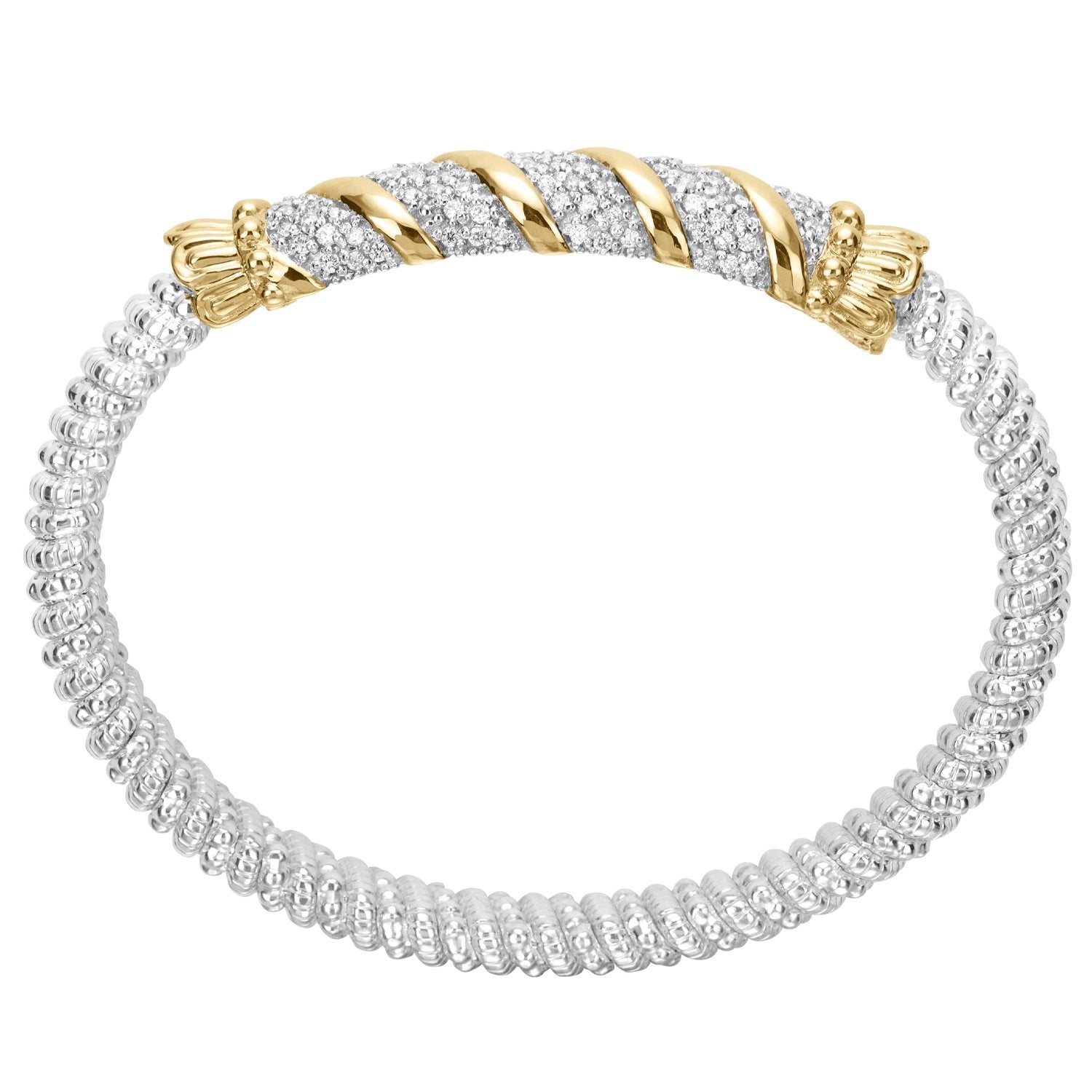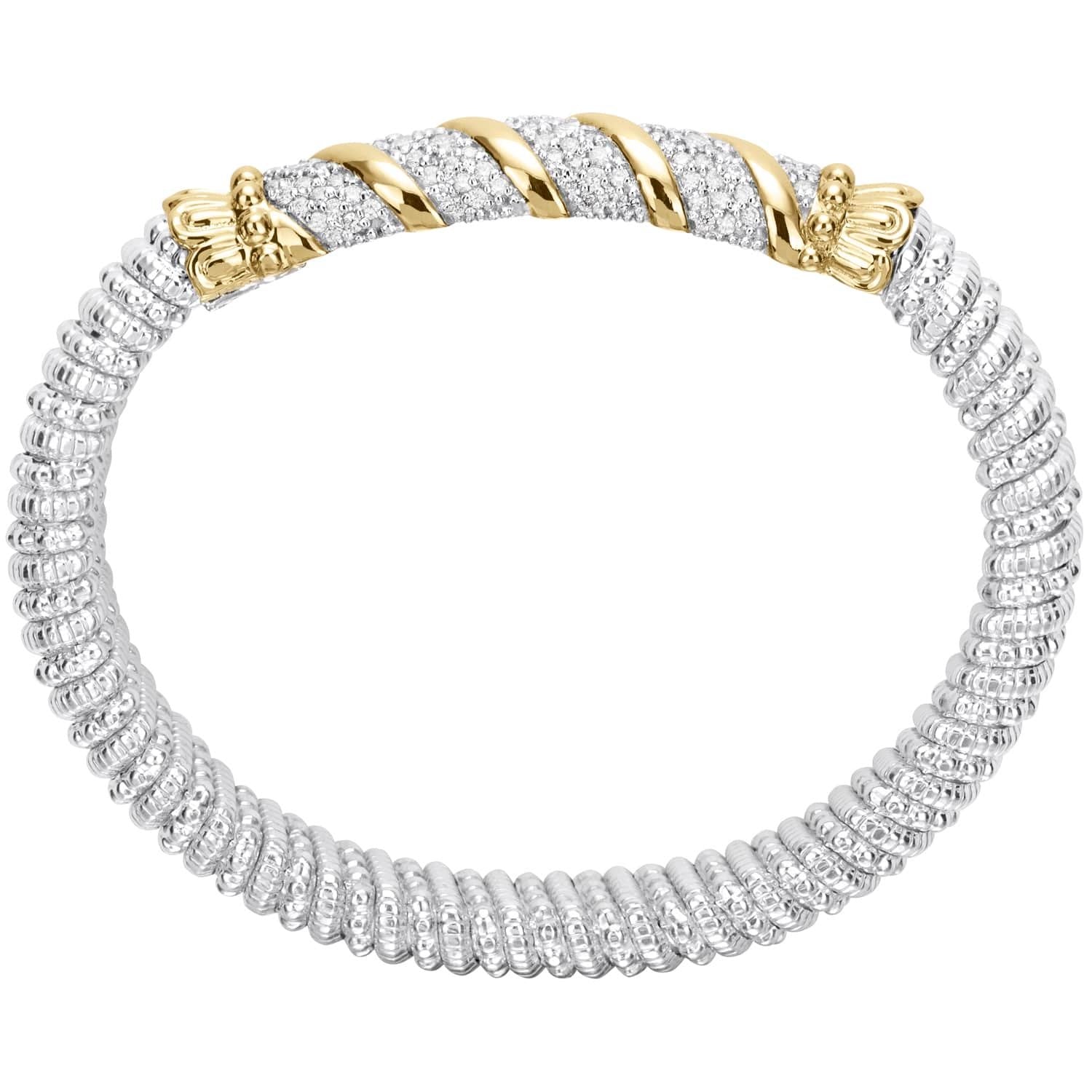 14K Gold and Sterling Silver, Diamond Stackable Bracelet | 6MM