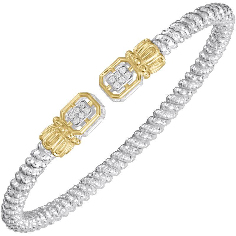 Featuring the signature Moiré Beaded® pattern, this open stackable bracelet brings rich texture and sparkle to the wrist. Crafted in 14K gold and sterling silver, its glittering diamond and regal crown accents create a refined finish—whether worn solo or layered with your favorite VAHAN styles.
