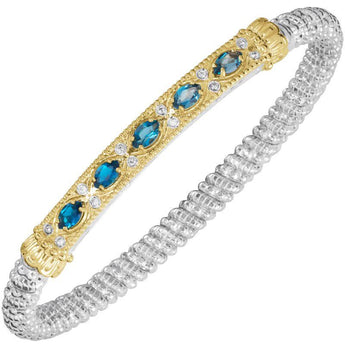 14K Gold and Sterling Silver, London Blue Topaz and Diamond Stackable Bracelet | 4MM