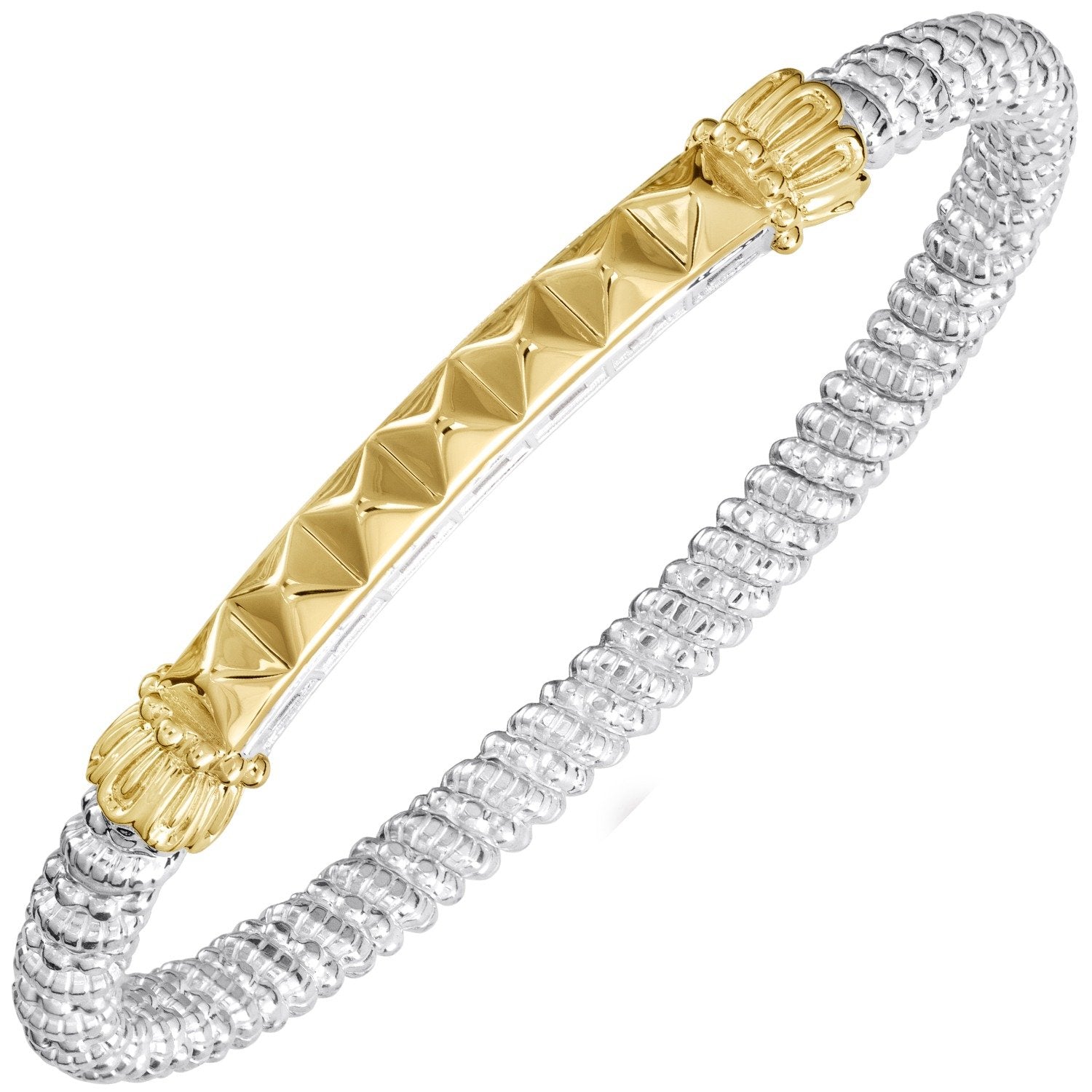 Our radiant stackable bracelet that elevates any outfit. Crafted in luxurious 14K gold and sterling silver, it showcases regal crown motifs and a textured Moiré Beaded® design, reflecting VAHAN’s artistry. Whether stacked or worn alone, it’s a striking accessory that effortlessly captures attention.