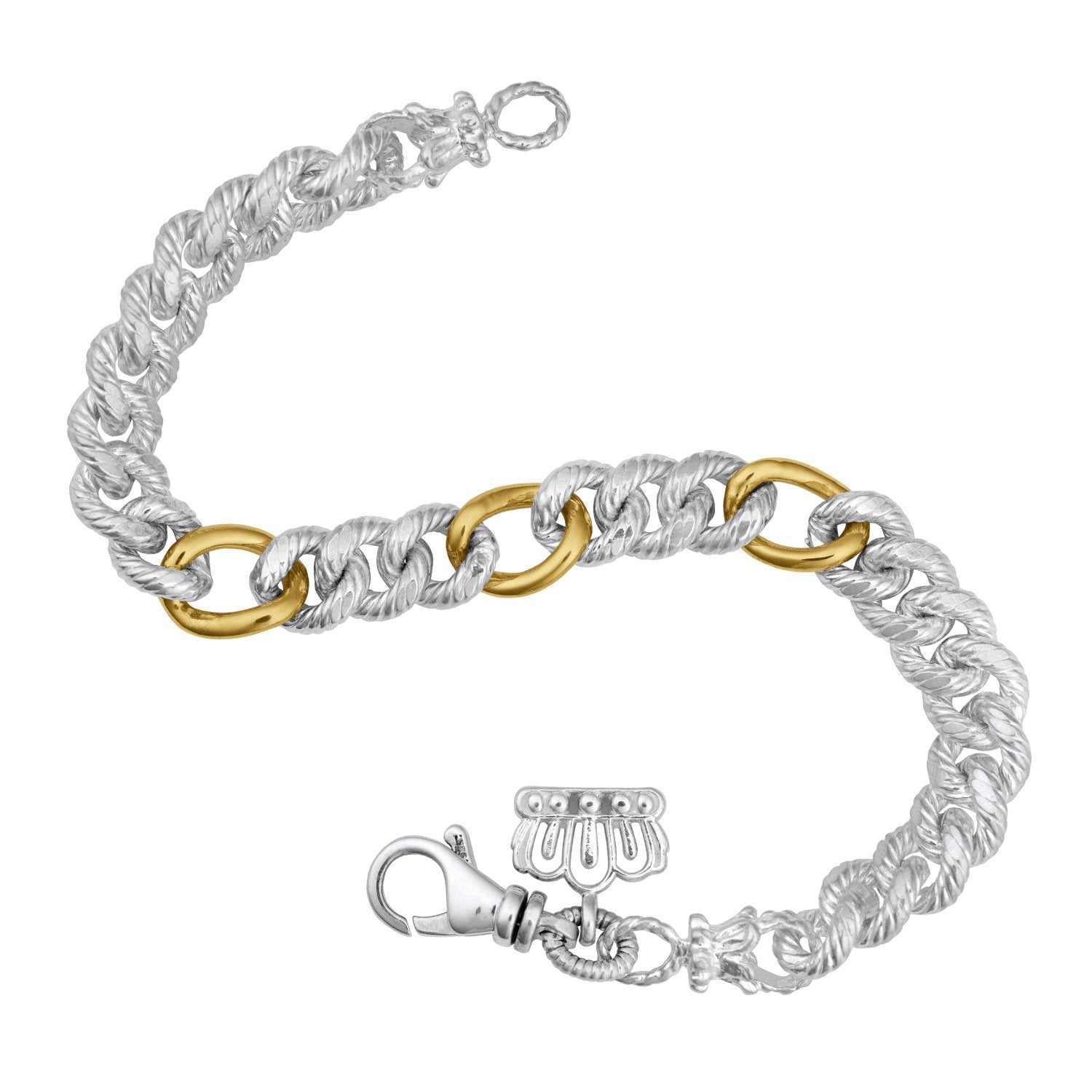 14K Gold and Sterling Silver, Two Tone Chain Bracelet