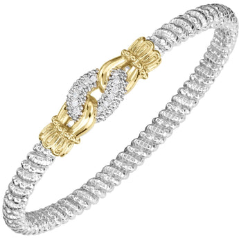 14K Gold and Sterling Silver, Diamond Stackable Bracelet | 4MM