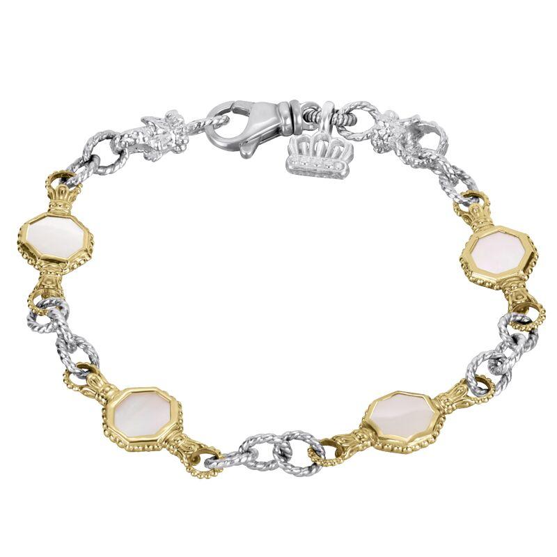 14K Gold and Sterling Silver, Mother of Pearl Chain Bracelet