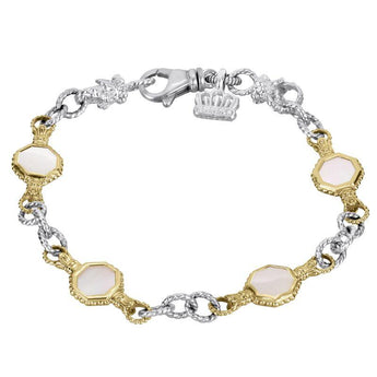 Crafted in 14K gold and sterling silver, this two-tone rope bracelet is elevated with the soft radiance of Mother of Pearl.
