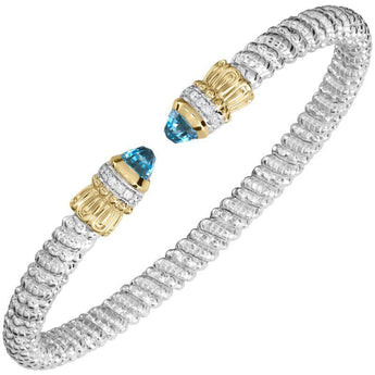 14K Gold and Sterling Silver, Blue Topaz and Diamond Stackable Cuff Bracelet | 4MM