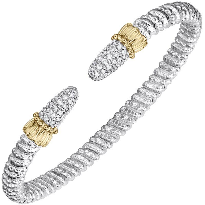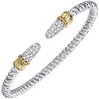 14K Gold and Sterling Silver, Diamond Stackable Cuff Bracelet | 3MM