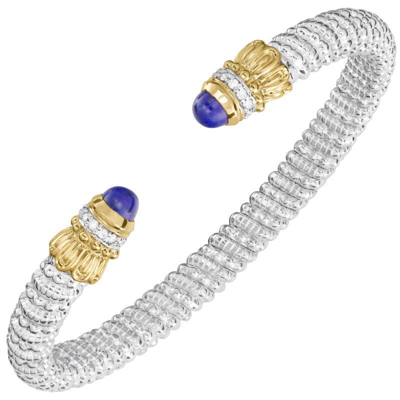 14K Gold and Sterling Silver, Lapis Lazuli and Diamond Stackable Cuff Bracelet | 6MM