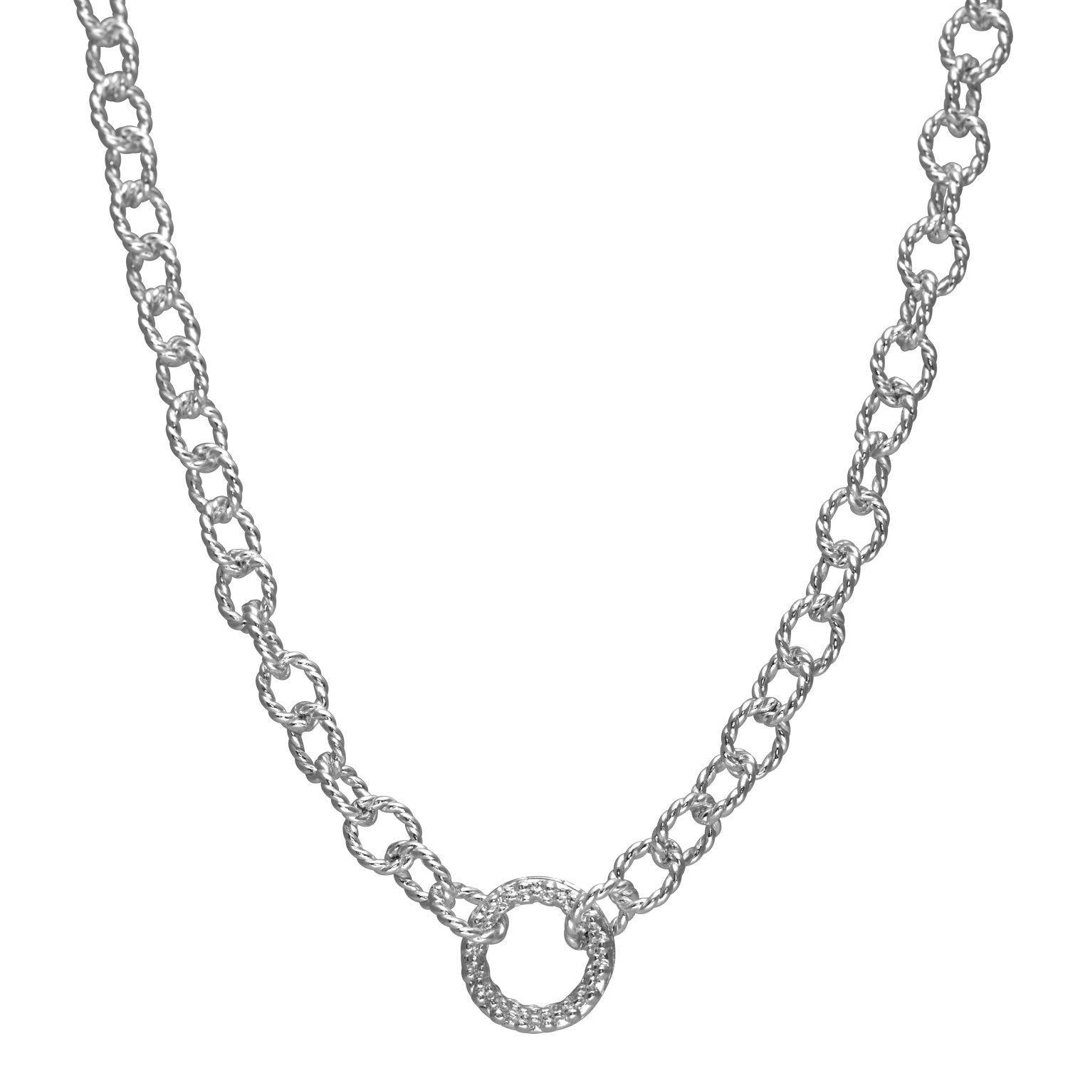 Simple yet sophisticated, a circle theme brings a classic sensibility to our elegant necklace. Rendered in sterling silver.