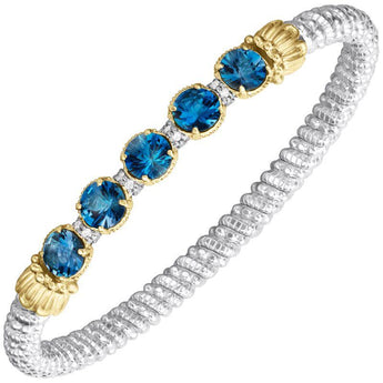 14K Gold and Sterling Silver, London Blue Topaz and Diamond Stackable Bracelet | 4MM