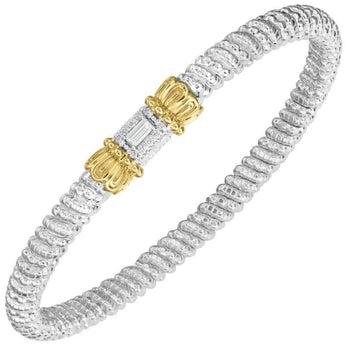 14K Gold and Sterling Silver, Diamond Stackable Bracelet | 4MM